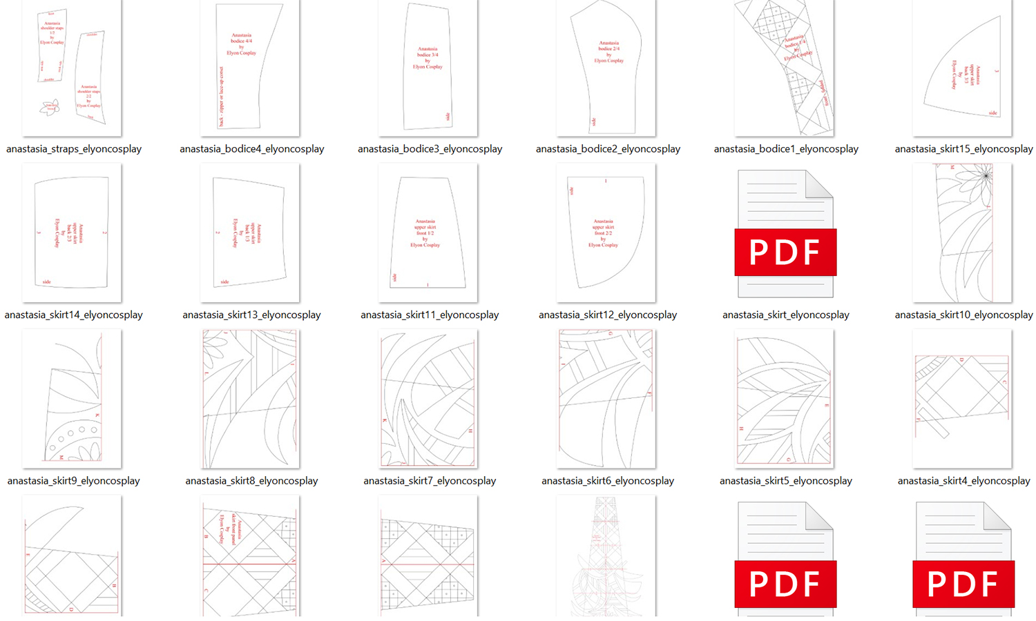 Inspired by the Broadway musical Anastasia. No instructions included, just the pattern pieces. The files include the elaborate sequin pattern of the front panel as well. It's not an exact replica of the original dress, but as close as I could get based on stage photos.